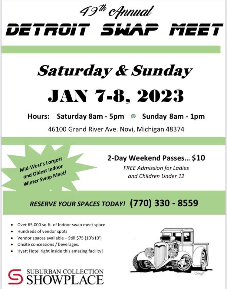 Detroit Area Motorcycle Swap Meet 2025 โข Novi, Michigan, The radio control club of detroit. Find detailed information about detroit automotive swap meet 2025 including dates, venue, contacts, directions, nearby hotels, and more.